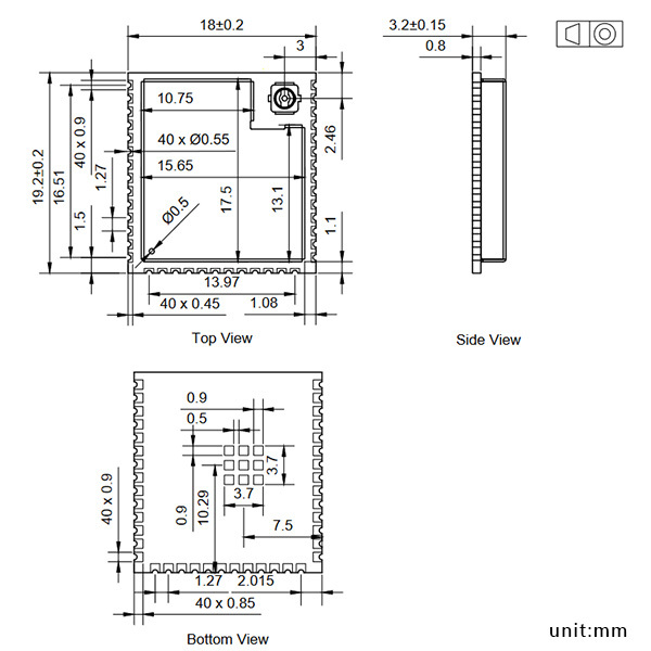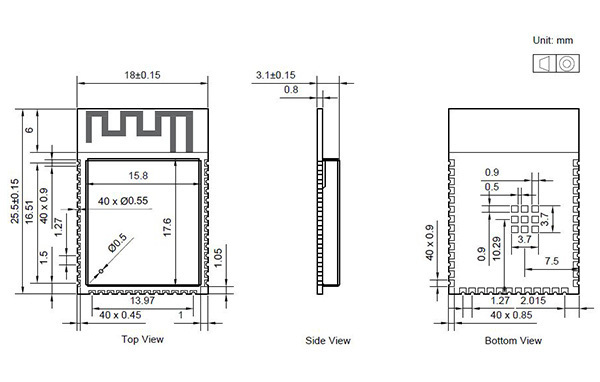 | Symbol | Flash | PSRAM | 環境溫度 (°C) | 模組尺寸 (mm) |