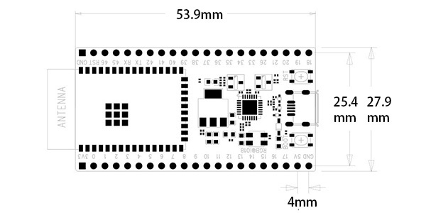 | Pin Headers(排針) | 所有可用 GPIO 管腳(除 flash 的 SPI 總線)均已引出至開發板的排針。用戶可對 ESP32-S2 晶片編程,使能 SPI、I2S、UART、I2C、觸摸感測器、PWM 等多種功能。 |