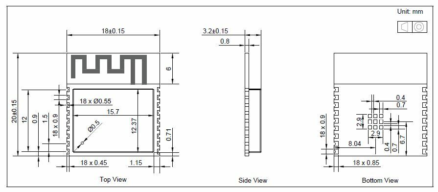 | 模組尺寸(mm) | 18.0 × 20.0 × 3.2 |