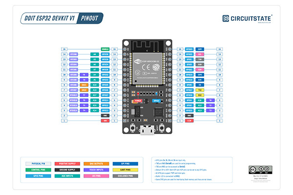 但該 ESP-WROOM-32 模組的所有引腳都斷開了,包括用於快閃記憶體的 SPI 接頭。 我們今天可以從網上商店買到的大多數電路板都沒有那些會縮短電路板長度的未使用引腳。 無論您擁有何種類型的電路板,只要它們使用 ESP32 晶片或模組,我們的引腳分配圖就仍然適用。