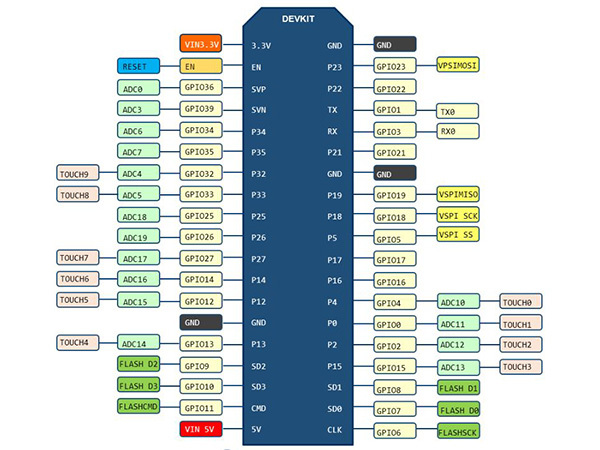 | 4 | SVN | GPIO39/ADC1_CH3/RTC_GPIO3 |