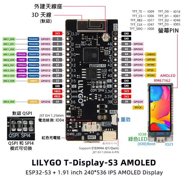 MCU:ESP32-S3R8 Tensilica Xtensa 雙核心 LX7 微處理器