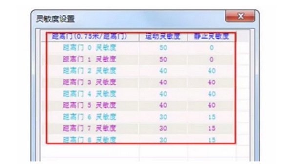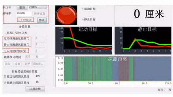 綠色線代表每個距離門上設置的靈敏度的值,紅色代表每個距離門上當前的目標能量值