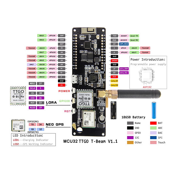| 名稱 | T-BEAM V1.1 | T-BEAM V1.1 0.96 OLED | T-BEAM V1.1 Meshtastic | T-BEAM V1.1 M8N GNSS | T-BEAM V1.1 LoRa SX1262 | T-BEAM V1.1 M8N+SX1262 |