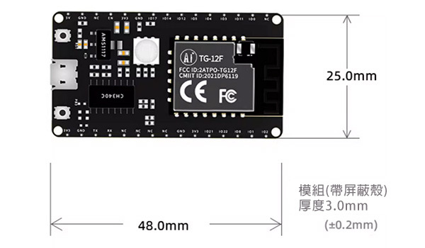 | 尺寸大小 | 48.0 x 25.0 x 14.0(±0.2)mm,淨重7.0g |