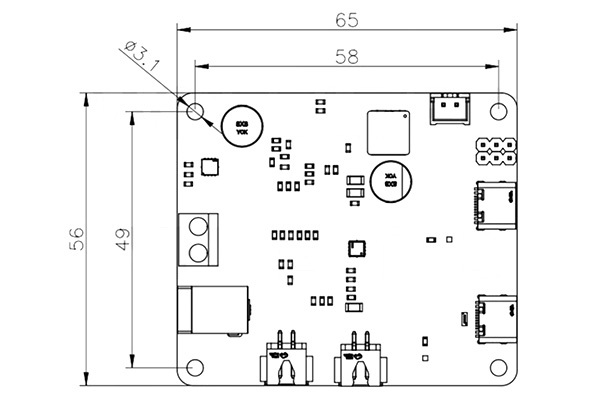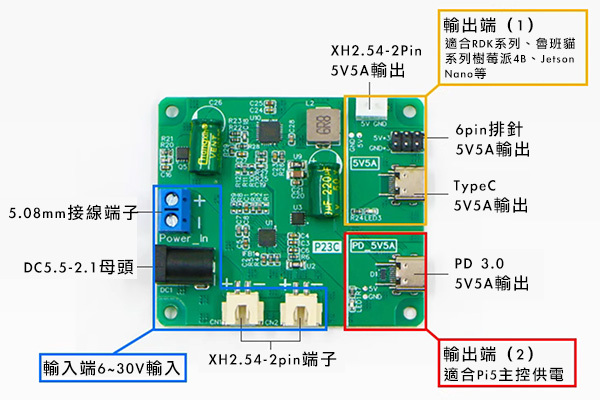 輸入電源接頭帶有防反接保護電路,有效避免電源接反導致板子損壞。