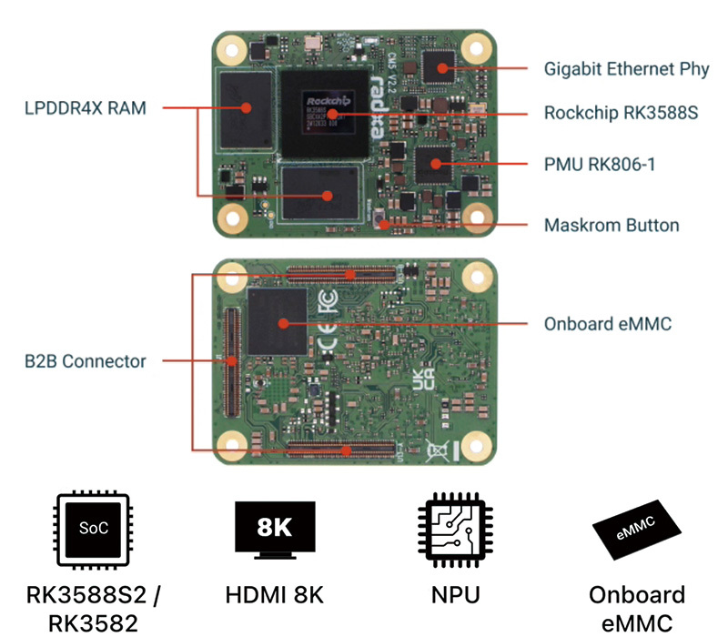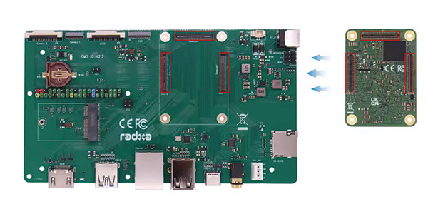 Radxa CM5 採用工業級 B2B 連接器,具有 3x100 針,方便拆卸安裝。