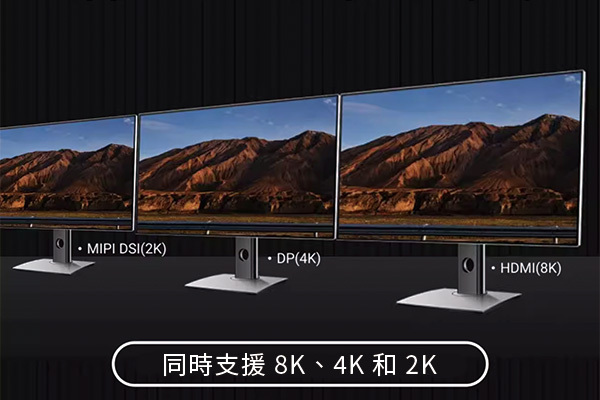 | 視頻輸出 | 1x HDMI 最高支援8Kp60 1x4 通道 eDP 最高支援 4Kp60 1x DP 最高支援 8Kp30 1x4 通道 MIPI DSI 1x2 通道 MIPI DSI |