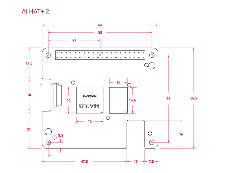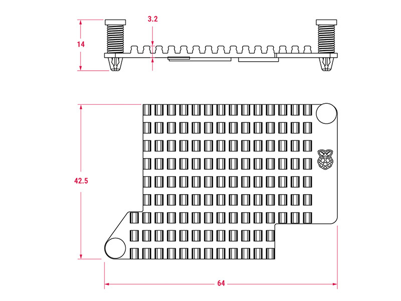 AI HAT+ 2散熱器的機械結構圖;所有尺寸均為近似值,單位為毫米。(unit:mm)