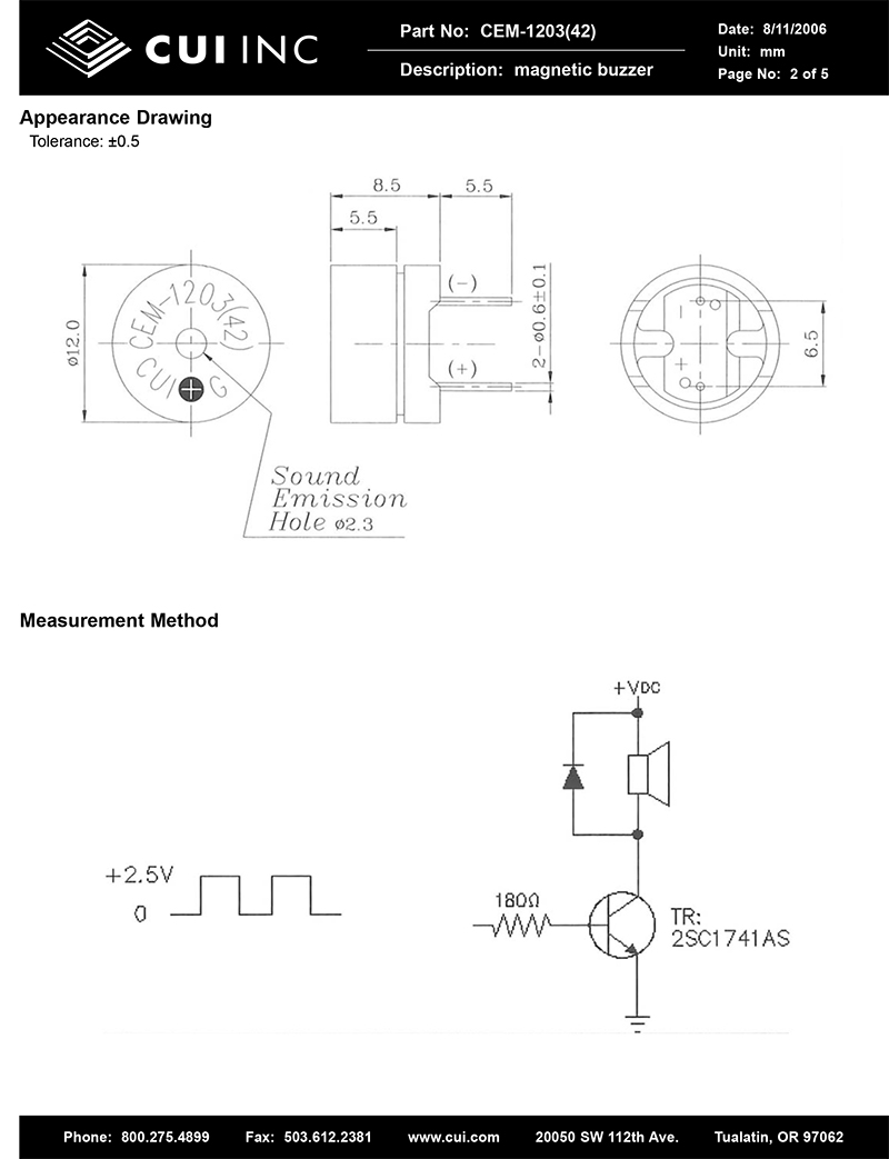 Each speaker is PTH solderable and requires an operating voltage of 3.5-5V with a mean current of 35mA max. These speakers also have a typical sound output of 95 dBA and a coil resistance of 42 ±6.3 ohms.