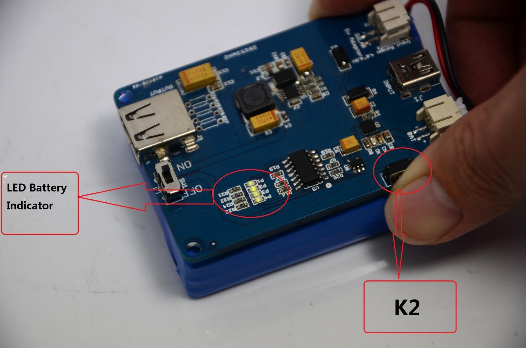 LiPo Rider Pro 與手機一樣有四個 LED 電量指示燈,只需按下按鈕 K2 即可查看電池電量,如下所示: