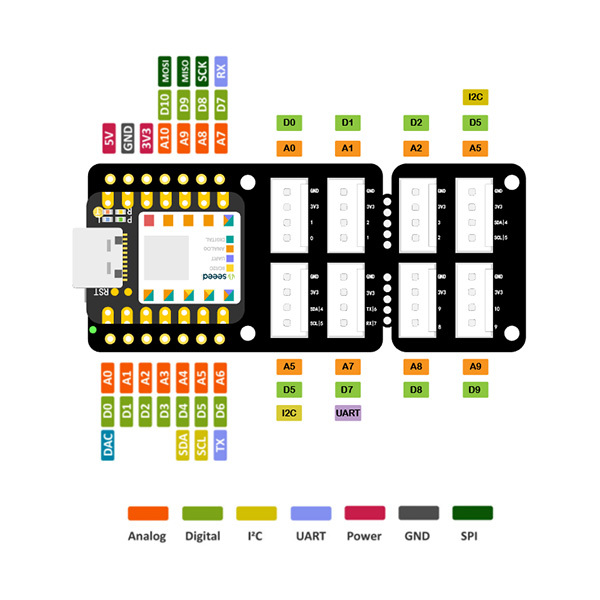 這是 Seeed Studio XIAO 的即插即用 Grove 擴展板。 此 Shield 通過拔出 Seeed Studio XIAO 的引腳並擴展至 8 個 Grove 連接器,包括兩個 Grove IIC 和一個 UART,幫助您擺脫跳線和焊接工作。 它充當 Seeed Studio XIAO 和 Seeed 的 Grove 系統的橋樑,提供 300 多個不同的 Grove 模組,包括感測器、執行器、通訊、顯示等。無需跳線和焊接工作,您可以享受使用 Seeed Studio 創建更多項目的樂趣 XIAO輕鬆快速。
