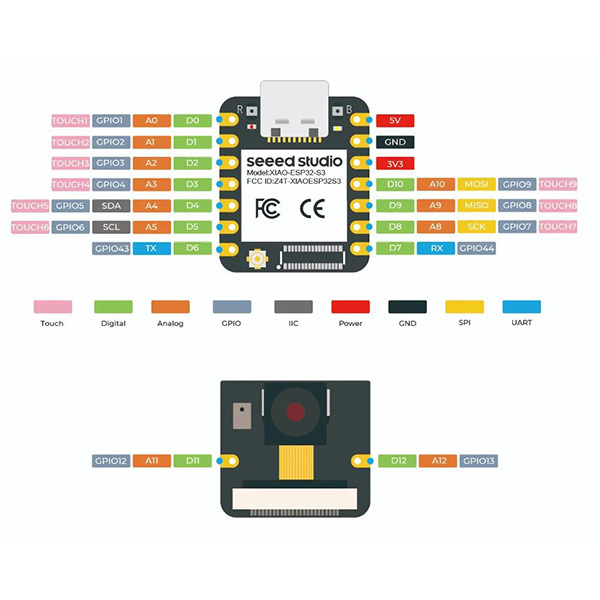 作為 Seeed Studio XIAO ESP32S3 的高級版本,該板配備了插入式 OV2640 攝影鏡頭感測器,可顯示全 1600*1200 解析度。 它的底座甚至兼容OV5640,支援高達2592*1944的解析度。 該板還配備了數字麥克風,用於語音感測和聲音辨識。