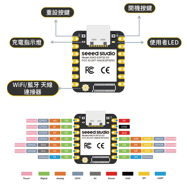 Seeed Studio XIAO ESP32S3 - 2.4GHz WiFi、BLE 5.0、8MB PSRAM、8MB FLASH、雙核心、支援電池充電、電源效率和豐富的接口,非常適合智慧家庭、物聯網、穿戴式裝置、機器人