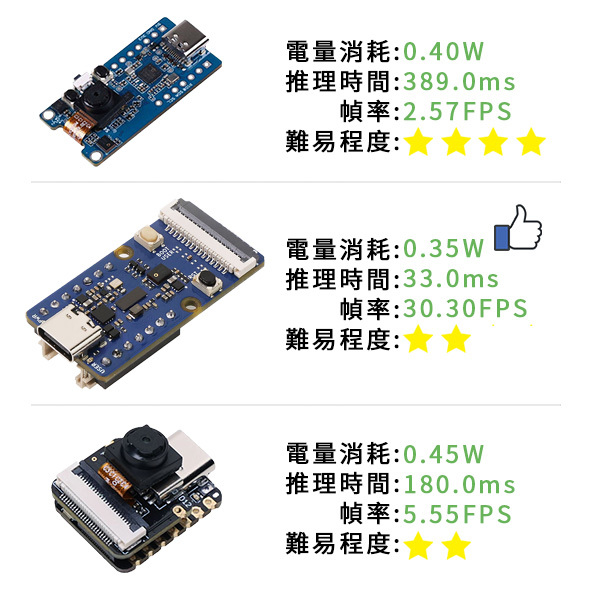 為了快速評估該板的性能,我們將其與 Seeed 其他基於 MCU 的視覺 AI 板(Grove Vision AI 模組、XIAO ESP32S3 Sense)在四個方面進行了比較: