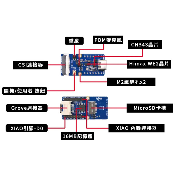| 板載週邊 | PDM 麥克風、SD 卡插槽 |