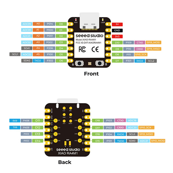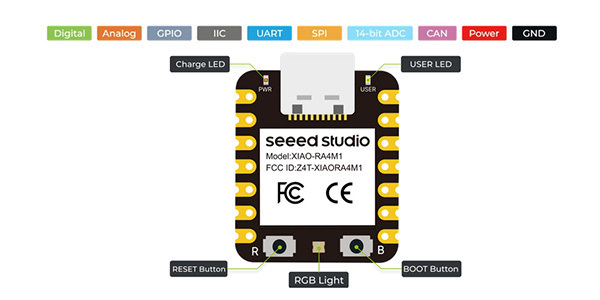 XIAO RA4M1 將瑞薩電子的 RA4M1 晶片(帶 FPU 的 32 位元 ARM® Cortex®-M4 MCU,頻率高達 48 MHz)整合到經典的 XIAO 外形尺寸中。此開發板提供 256KB 快閃記憶體、32KB SRAM、8KB EEPROM、USB 2.0 連接器、重設和啟動按鈕、3 個 LED、14 位元 A/D 轉換器、12 位元 D/A 轉換器和 CAN BUS 介面。憑藉板載充電電路和低功耗模式(低至 45μA),它非常適合電池供電應用。