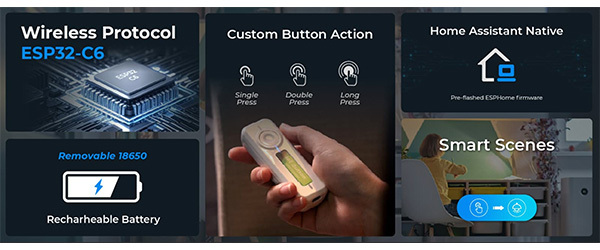 這個開源按鈕是基於 ESP32-C6 構建,是開發人員的遊樂場。透過 ESPHome,以 YAML 格式自訂 LED 指示燈和點擊模式。透過點擊、雙擊或長按來控制燈光、電影模式或智慧場景 - 您的智慧家居,您的規則。