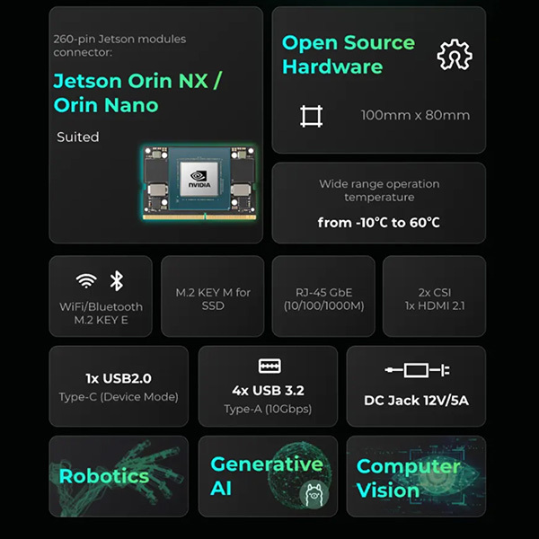 J401 載板是一款先進的開源擴充板,適用於 NVIDIA Jetson Orin Nano/Orin NX 模組。它從 SoM 中分出典型的 IO 接口,提供高速和低速連接。其尺寸、性能和易於開發的特性使 Jetson Orin 系統具有靈活性和可擴展性,可快速進入市場並持續更新。