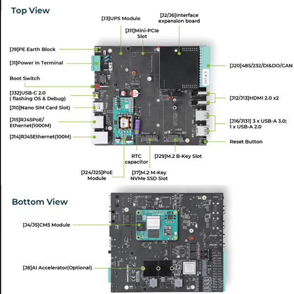 | 3x USB-A 3.0 Host; 1x USB-A 2.0 Host; 1x USB-C 2.0 (For flashing OS&Debug) | ||