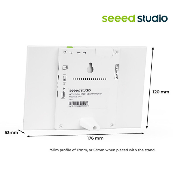 reTerminal E1001 內建 2000mAh 電池,並經過精心設計,以實現最高能效,在深度睡眠模式(6 小時刷新間隔)下,單次充電即可運行長達 3 個月。您可以將其放置在任何地方——桌面上、牆面安裝或任何空間——無需擔心頻繁充電。