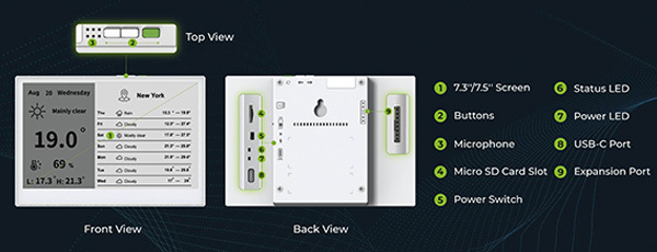 reTerminal E1001 是一款完全組裝的 HMI(人機介面),採用時尚耐用的外殼,整合 7.5 吋 800×480 單色電子紙顯示器。它搭載樂鑫 ESP32-S3 晶片,開箱即用,帶來驚豔的視覺效果,無需額外設定。