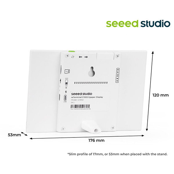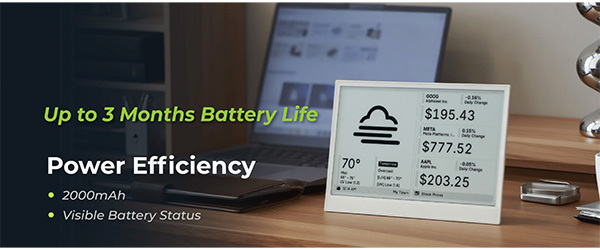 reTerminal E1001 內建 2000mAh 電池,並經過精心設計,以實現最高能效,在深度睡眠模式(6 小時刷新間隔)下,單次充電即可運行長達 3 個月。您可以將其放置在任何地方——桌面上、牆面安裝或任何空間——無需擔心頻繁充電。