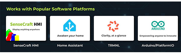 無縫相容多種軟體生態系統。使用 300 多個插件來建立無需程式碼的 TRMNL 儀錶盤,用於日常和工作數據,透過 ESPHome 韌體即時連接到 Home Assistant,或使用 Arduino、PlatformIO 或 ESP32-IDF 環境開發您的客製化應用程式。
