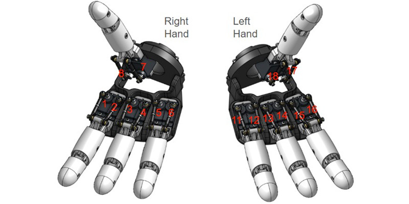 | 驅動 | 每個手指採用 2 個 Feetech SCS0009 伺服馬達的並聯機構 |