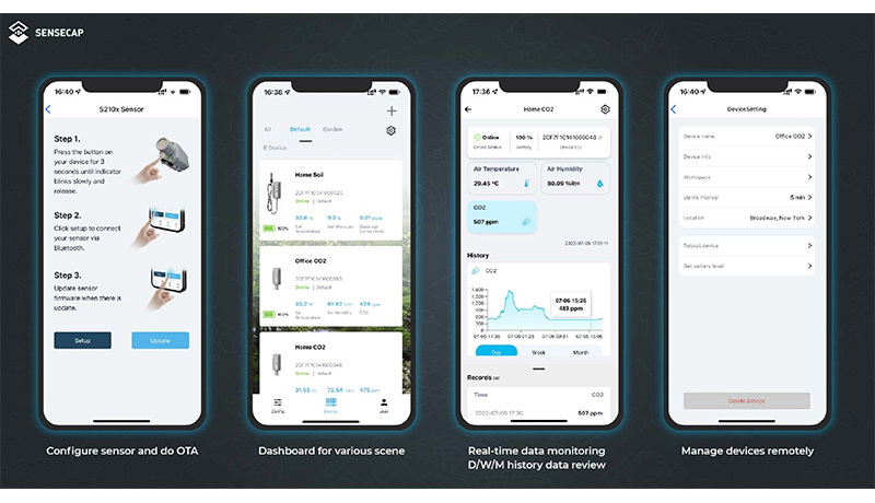 作為 Seeed 工業物聯網 (IIoT) 產品系列的首批產品之一,SenseCAP 專注於無線環境感測應用,例如智慧農業、精準農業和智慧城市等。它包含硬體產品(感測器、資料記錄器和網關等)、軟體服務(SenseCAP 入口網站、行動應用程式、開放式儀錶板)以及用於裝置和資料管理的 API。