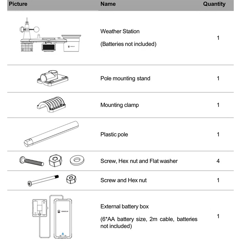 注意:作為商用級氣象站,S2120 在某些極端天氣條件(極高或極低溫度)和部署環境(高鹽度和高濕度)下,其內部感測器和電池可能會加速老化,從而導致設備故障。請根據實際部署環境溫度選擇合適的電池類型。