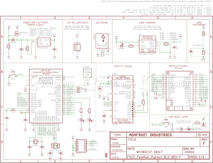 使用 Apache Mynewt 系統時,開發者可完全掌控模組行為,自訂 GATT 服務、設定廣播內容等。亦可使用 Adafruit App 將手機平板作為控制裝置,透過 BLE 傳送資料至 nRF52。板載設計支援 3.7V 鋰聚合物電池與自動充電切換,無電池時可使用 microUSB 供電;若使用電池,插入 USB 即可進行充電。模組亦具備電池電壓監測功能,有助於續航管理。