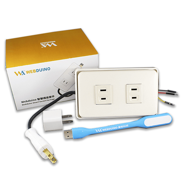 Webduino 智慧插座是將我們一般生活裡常見的插座改裝,透過馬克一號或是 Fly 與繼電器的輔助,讓插座可透過無線網路連上雲端,如此一來就可以輕鬆實現手機遙控插座、設定插座自動供電設施、依據氣溫自動啟動風扇...等智慧插座應用。