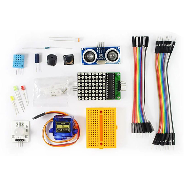 Webduino 基礎套件是入門的零件材料包,所對應的範例在官方網站均有提供,可從中學習到基本的電子電路,從點亮一顆 LED 燈開始,到自由操控七彩霓虹燈,從玩轉按鈕開關到用超音波傳感器控制 Youtube 影音播放、甚至可以偵測溫濕度來開啟風扇等,以上都只是一小部分的創意應用,更多想像的空間就留待你的創造力去實現。