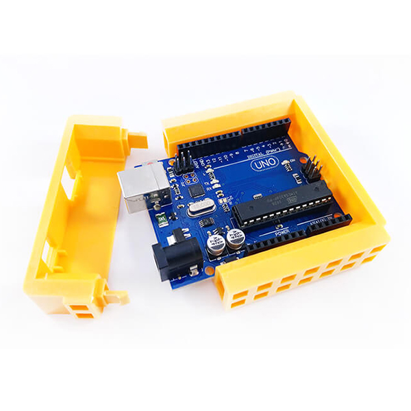 Arduino UNO 積木是一款為 Arduino UNO 開發板量身打造的樂高相容積木,可以將開發板完美鑲嵌於積木中,並延伸提供拼接樂高積木的孔位,你可以將 Webduino Fly 與 Arduino UNO 結合,再放入積木中,就能利用樂高組合出自己獨一無二的造型外觀。