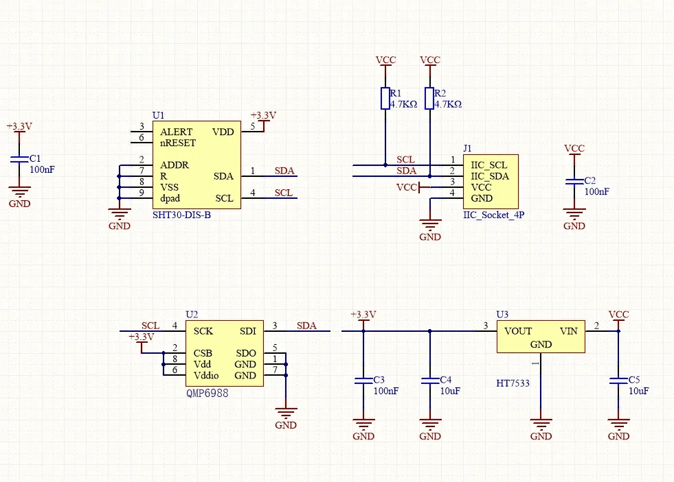 | 通訊協議 | I2C:SHT30(0x44)、QMP6988(0x70) |