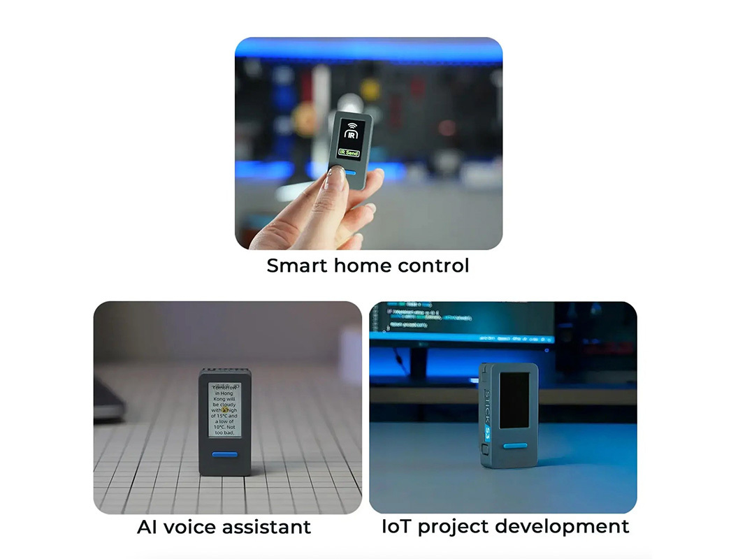 在人機互動方面,它配備了1.14吋液晶顯示器、六軸IMU感測器和可編程按鍵。音響系統採用ES8311單聲道音訊編解碼器,搭配高靈敏度MEMS麥克風和AW8737功率放大器,可實現清晰的音訊擷取和高保真音訊輸出,進而增強語音辨識和互動體驗。此外,它還整合了紅外線發射器和接收器以及250mAh鋰電池,使其適用於智慧家庭控制、AI語音助理和物聯網專案開發等場景。