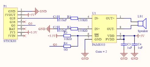 SPK Hat是一款兼容M5SticKC的揚聲器,內建PAM8303功放IC(3W單通道D類音頻功率放大器),高PSRR和差分輸入消除了噪聲和射頻的干擾,因此能夠高質量低失真的還原音頻信號