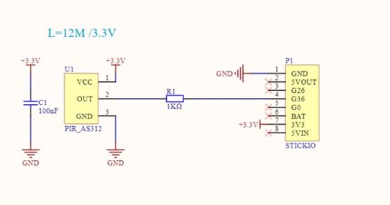 PIR Hat是一款兼容M5SticKC的人體紅外感測器,它屬於"被動式熱釋電紅外探測器",通過檢測由人體或物體發射、反射的紅外輻射進行判斷工作,當檢測到紅外時、輸出高電平,並進行一段時間的延時(期間保持高電平且允許重複觸發),直至觸發信號消失(恢復低電平)。
