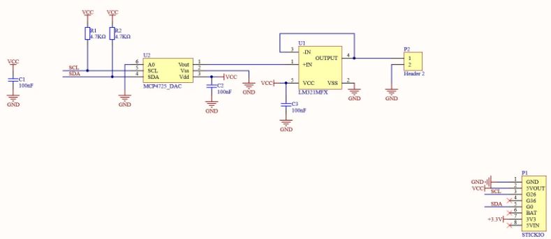 DAC Hat是一款兼容M5SticKC的DA轉換模組,內部集成DAC轉換晶片MCP4725,具備低功耗,高精度,單通道,12位緩衝電壓輸出數模轉換器(DAC),非易失性存儲器(EEPROM )。其片上精密輸出放大器使其能夠達到軌到軌模擬輸出擺幅,用戶可以使用I2C接口命令將DAC輸入和配置燒寫到非易失性存儲器(EEPROM)中,使得DAC在斷電期間仍能保持代碼,上電後即可直接使用,I2C地址為0x60。
