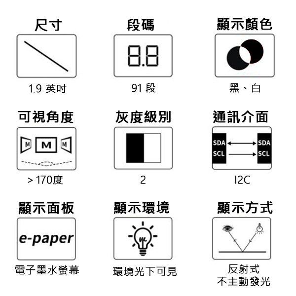 支援局部刷新,功耗低、視角寬、斷電仍可清晰顯示。