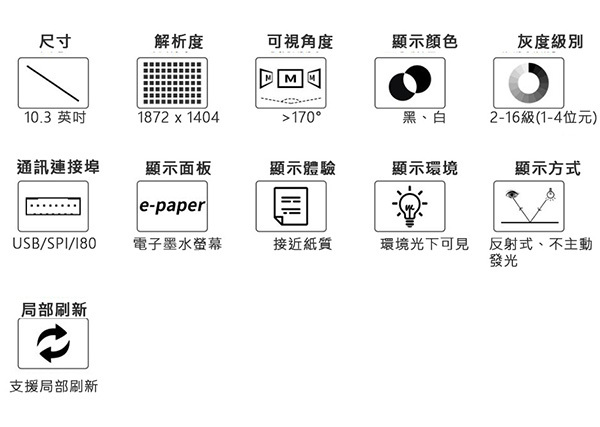 用於電子書閱讀器、墨水屏顯示器、工業儀表等顯示應用
