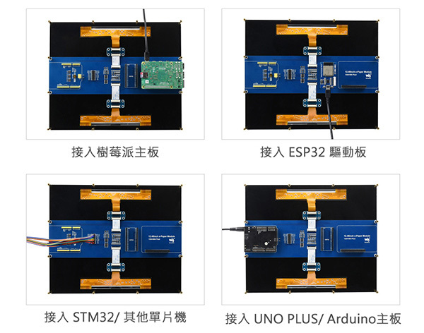 可直接插入 e-Paper ESP32 Driver Board / ESP32-DevKitC 等 主控板