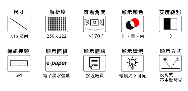 功耗低、視角寬、斷電仍可清晰顯示,適用於貨架標籤、工業儀表等顯示應用