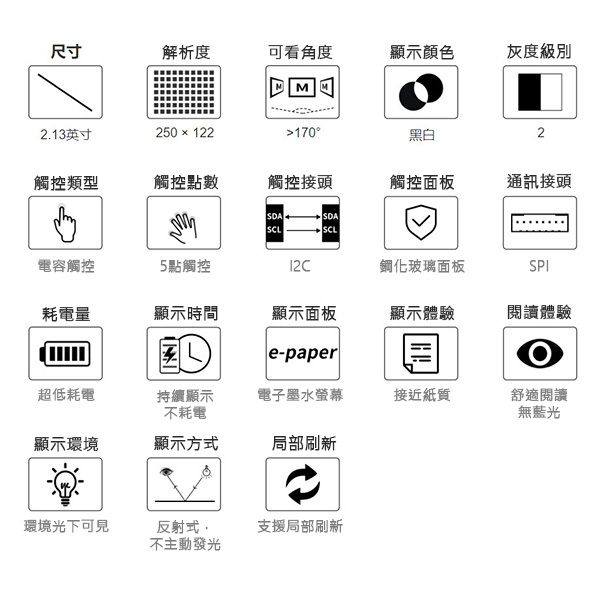支援局部刷新,功耗低、視角寬、斷電仍可清晰顯示