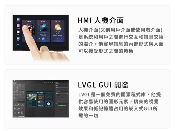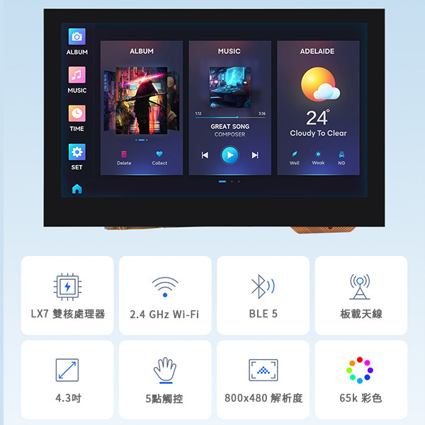 整合 RGB 介面顯示和 5 點電容觸控,多種週邊介面
