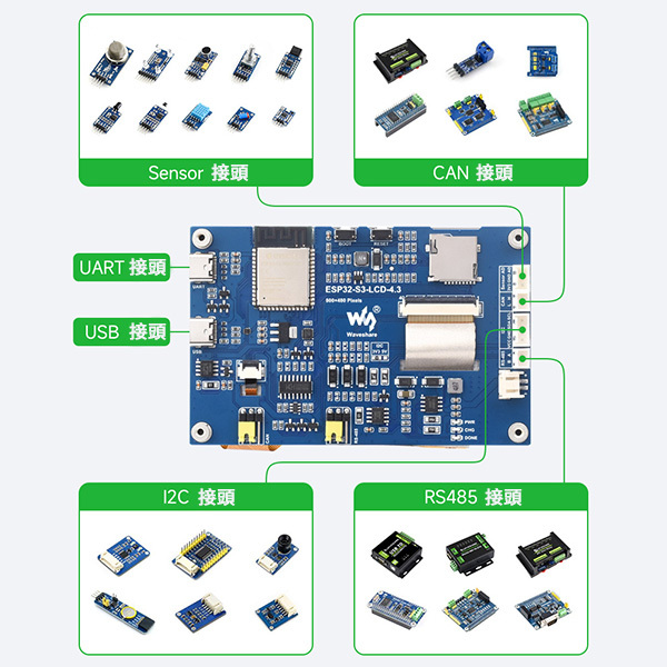 可透過 Sensor、CAN、RS485、I2C 等介面接入更多擴充設備