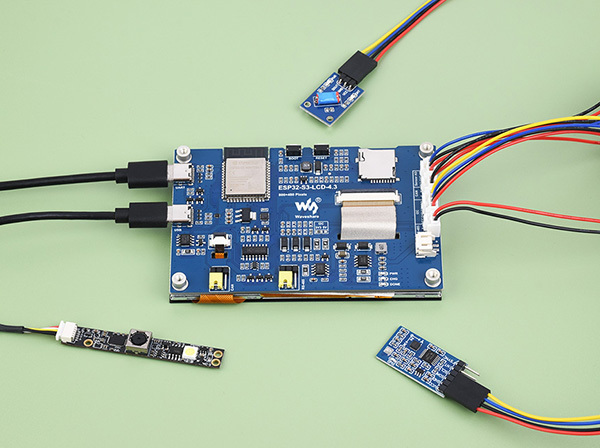 ESP32-S3-Touch-LCD-4.3 是一款支援 2.4GHz WiFi 和 BLE 5 的微控制器開發板。 整合大容量 Flash 和 PSRAM,板載 4.3 吋電容觸控螢幕,可流暢運行 LVGL 等 GUI 介面程式;結合多種週邊接頭,快速開發 ESP32-S3 的 HMI 等應用。