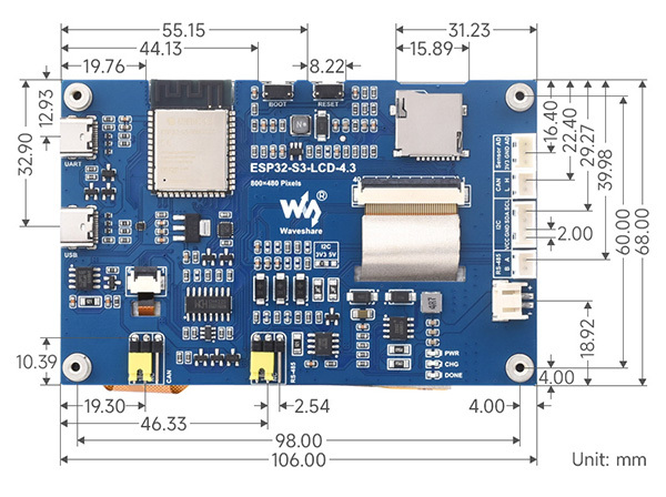 ESP32-S3 4.3吋 電容觸控螢幕開發板