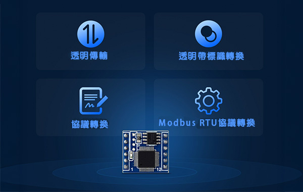 支援透明轉換、透明帶標識轉換、格式轉換和 Modbus RTU 協定轉換模式